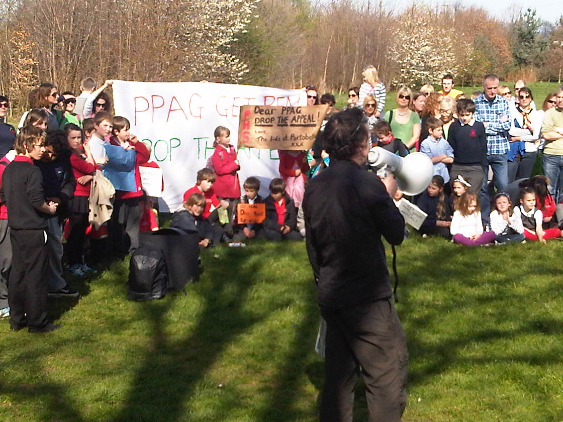 Marilyne MacLaren spoke at today's demo in the park. Interestingly, not only are the council suing for costs, they will also ask the court to ensure that PPAG put up a bond, in advance of their appeal.